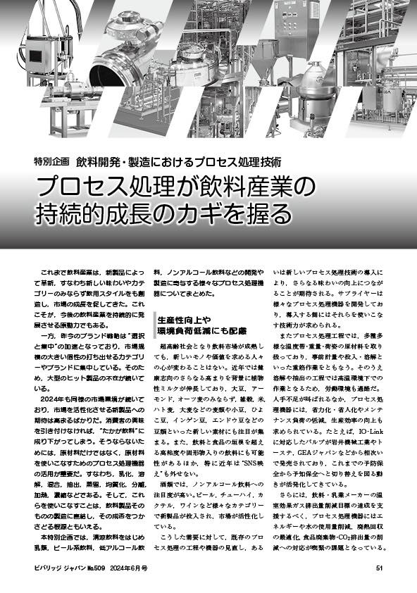 - 特別企画:飲料開発・製造におけるプロセス処理技術