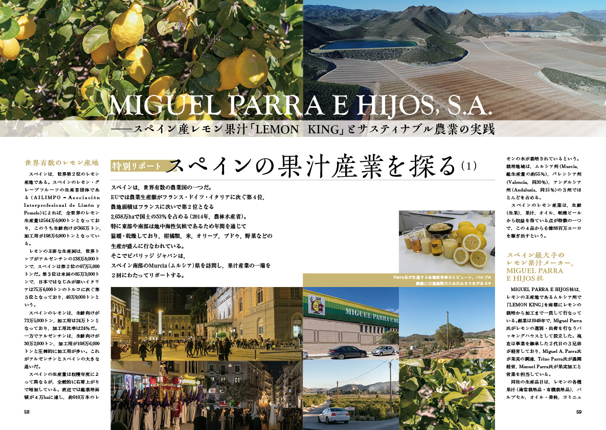 そこでビバリッジ ジャパンは,スペイン南部のMurcia(ムルシア)県を訪問し,果汁産業の一端を2回にわたってリポートする…続きは本誌をご覧ください。