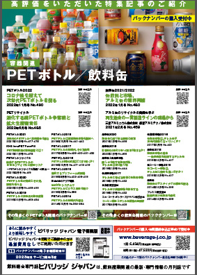 本誌は各飲料の製造メーカーをはじめ,パッカー,プラントエンジニアリング,容器包装,フレーバー,添加物,商社,リサイクル業界,官公庁など広く読まれています。