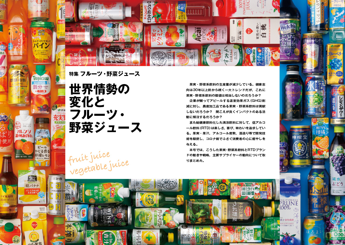 本号では,こうした果実・野菜系飲料とRTDブランドの動きや戦略,主要サプライヤーの動向について取りまとめた。…続きは本誌をご覧ください。
