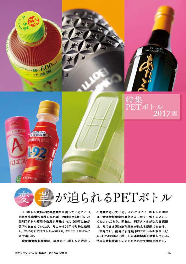本号では,前号に引き続きPETボトルを取り上げる。またdrinktecリポートの連載記事を掲載している。世界の飲料技術トレンドをあわせて参照されたい。