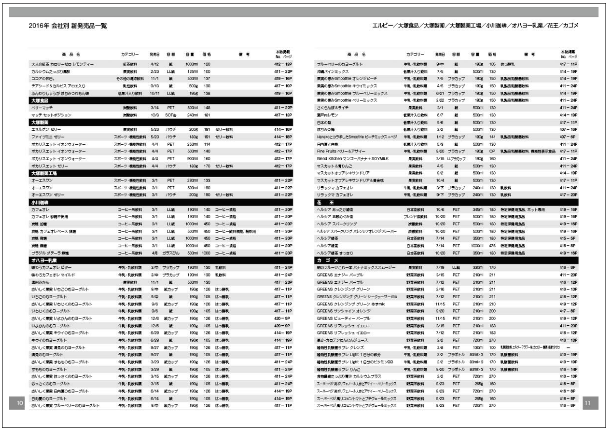 2016年 会社別 新発売品一覧