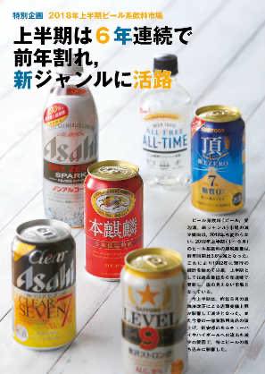 ビール各社とも市場縮小を食い止めるべく酒税の一本化を見据えてビール強化の戦略を立てているが,今年も前年割れの様相が高まってきている。ビバリッジ ジャパンでは,2018年上半期のビール系飲料およびビールテイスト飲料の市場とブランド動向をまとめるとともに,下半期の市場予測と主要ブランド戦略などについてリポートする。…続きは本誌をご覧ください。