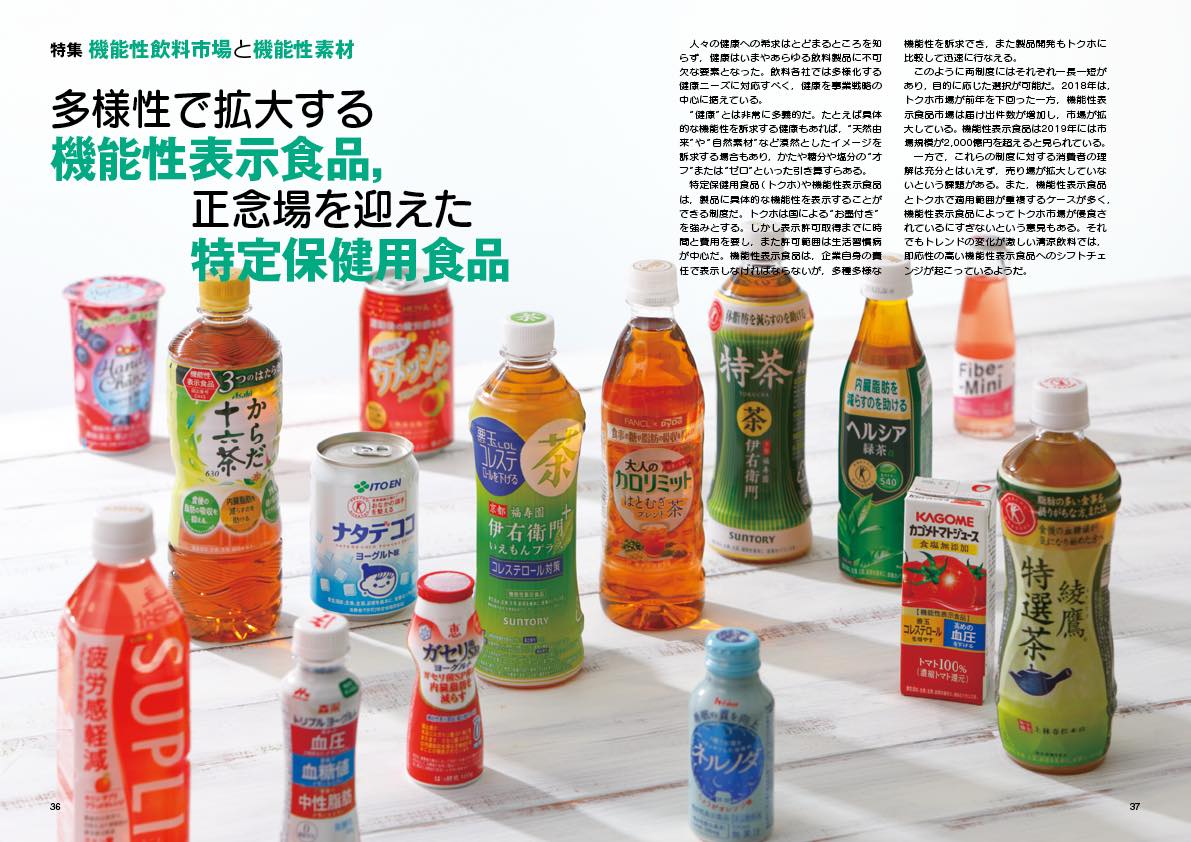 一方で,これらの制度に対する消費者の理解は充分とはいえず,売り場が拡大していないという課題がある。また,機能性表示食品とトクホで適用範囲が重複するケースが多く,機能性表示食品によってトクホ市場が侵食されているにすぎないという意見もある。それでもトレンドの変化が激しい清涼飲料では,即応性の高い機能性表示食品へのシフトチェンジが起こっているようだ。 …続きは本誌をご覧ください。