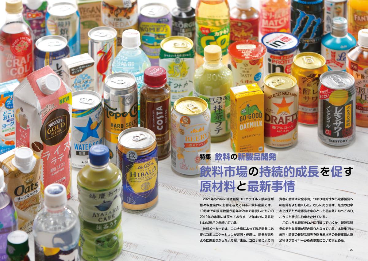 このような現状をいかに打破していくか,新製品開発の新たな課題が浮き彫りとなっている。本特集では,飲料・酒類の新製品開発を巡る原材料の最新事情と添加物サプライヤーからの提案についてまとめた。