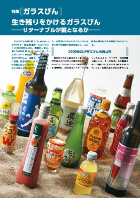 ガラスびん市場の縮小が止まらない。2009年は,総生産量が120万5,012トン(前年比96.6%),本数にして65億8,704万本(前年比97.4%)となった。人類にとって最も古い容器の一つであるガラスびんは,金属缶,プラスチック容器,紙容器など,あらゆる他素材の容器に取って代わられ,そのフィールドは徐々に狭められているといえよう。自然素材で作られるガラスびんは,その根本的価値の転換を図って,この難局を乗り越える必要性に迫られている。