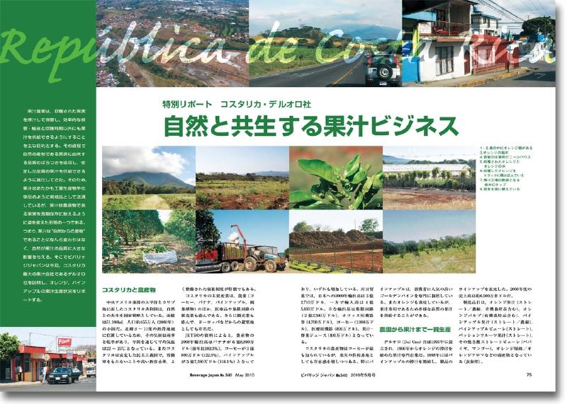 果汁産業は,収穫された果実を搾汁して保管し,効率的な保管・輸送と収穫時期以外にも果汁を供給できるようにすることを主な目的とする。その過程で自然の産物である果実に由来する品質のばらつきを吸収し,安定した品質の果汁を供給できるように進化してきた。そのため,果汁はあたかも工業生産物や化学品のように規格品として流通しているが,果汁は農産物である果実を長期保存に耐えるように姿を変えた形態の一つである。つまり,果汁は“自然からの産物”であることになんら変わりはなく,自然が果汁の品質に大きな影響を与える。そこでビバリッ ジジャパンは今回,コスタリカ最大の果汁会社であるデルオロ社を訪問し,オレンジ,パインアップルの果汁生産状況をリポートする。
