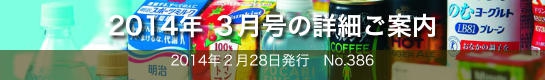 本特集は,ビバリッジ ジャパンが取りまとめた主要飲料ブランドの動向と,2014年の戦略である。…続きは本誌をご覧ください。