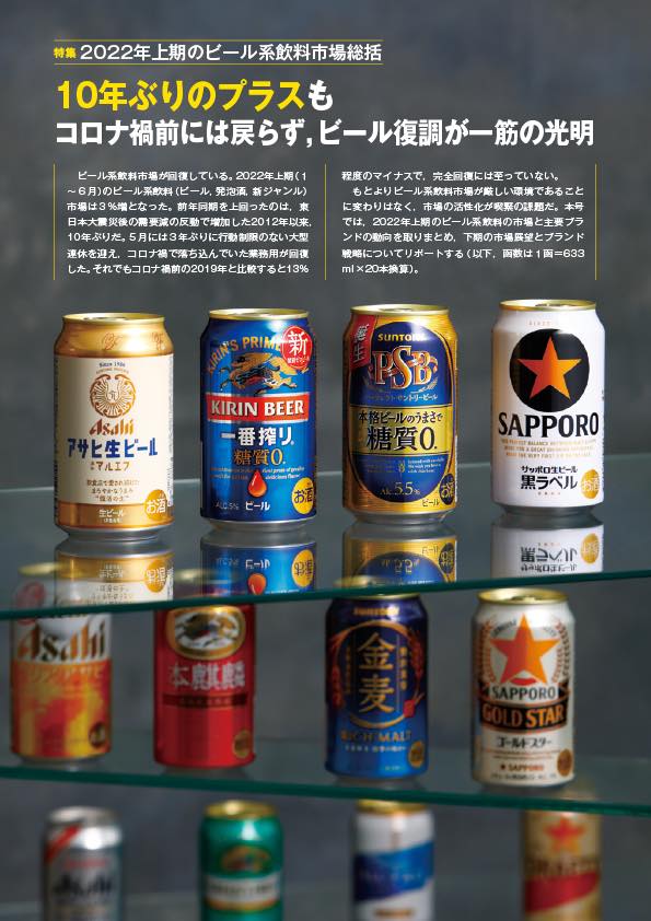 もとよりビール系飲料市場が厳しい環境であることに変わりはなく,市場の活性化が喫緊の課題だ。本号では,2022年上期のビール系飲料の市場と主要ブランドの動向を取りまとめ,下期の市場展望とブランド戦略についてリポートする(以下,函数は1函=633ml×20本換算)。