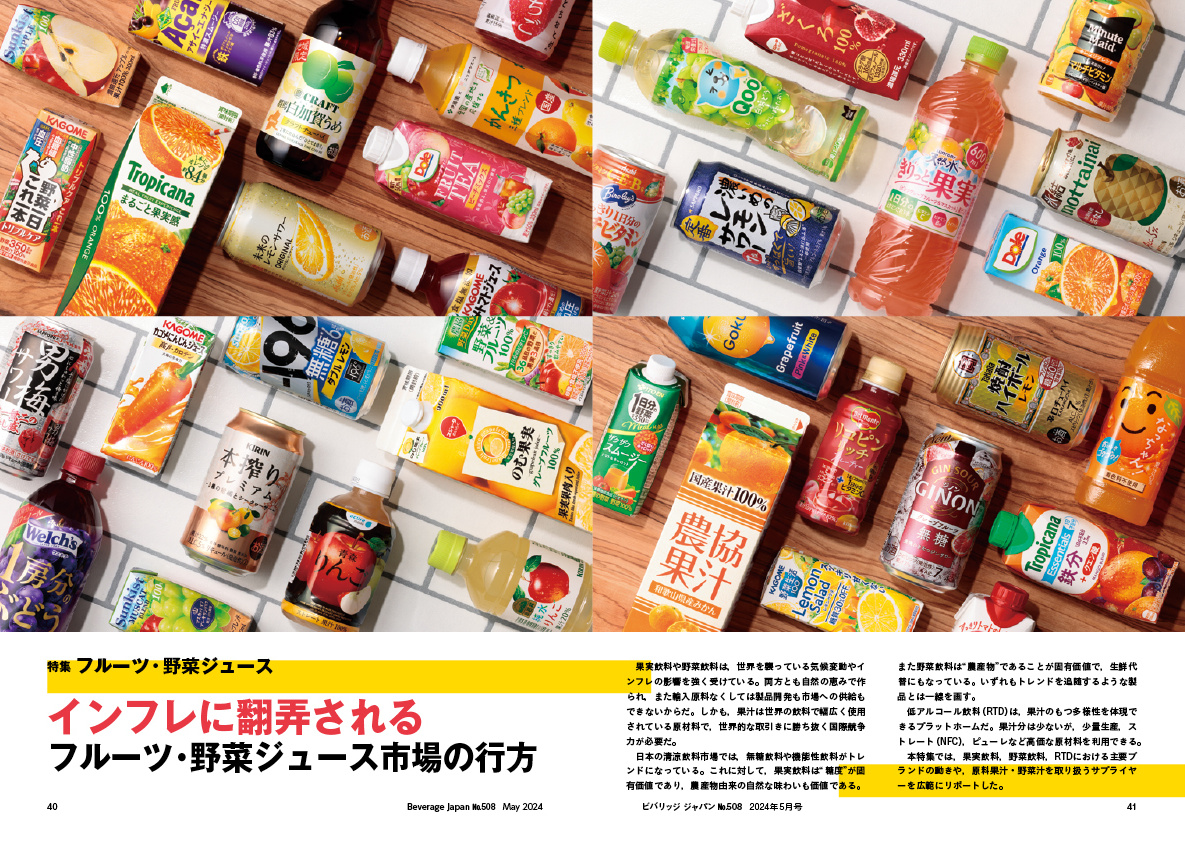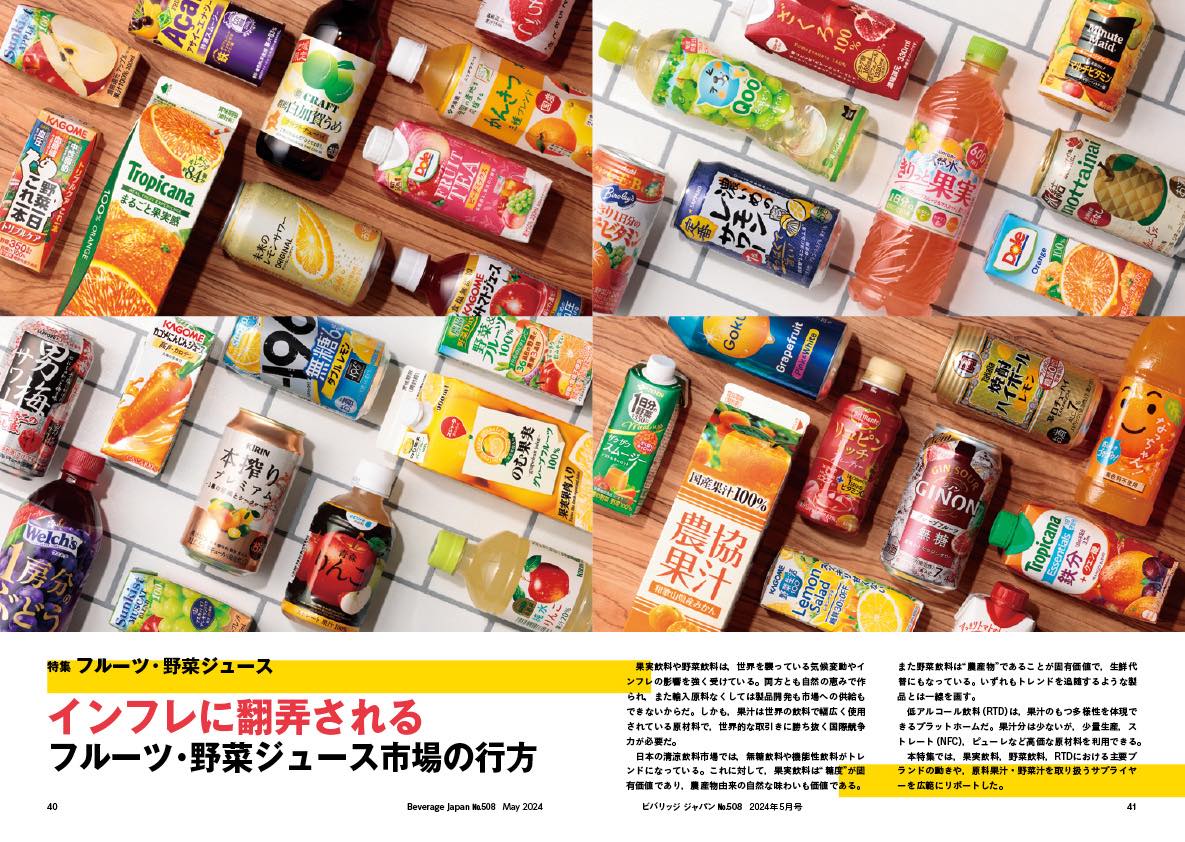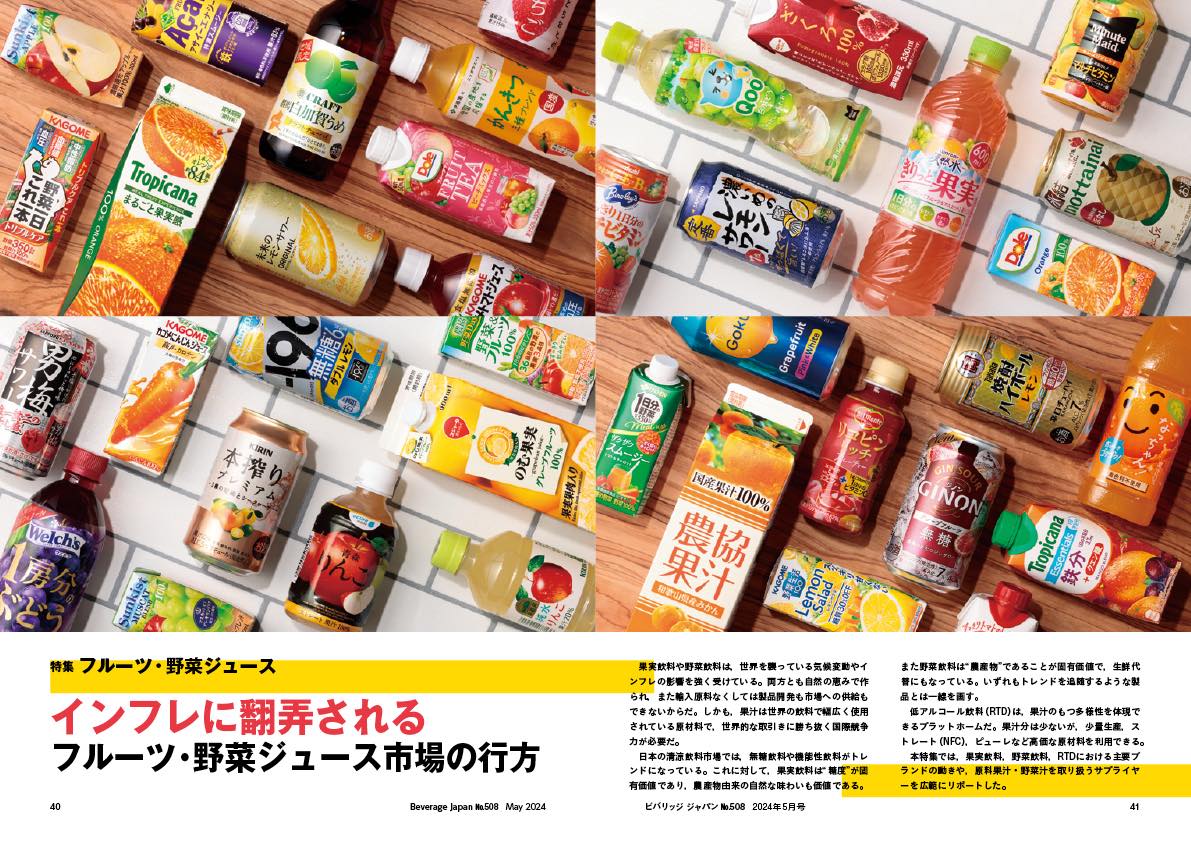 本特集では,果実飲料,野菜飲料,RTDにおける主要ブランドの動きや,原料果汁・野菜汁を取り扱うサプライヤーを広範にリポートした。