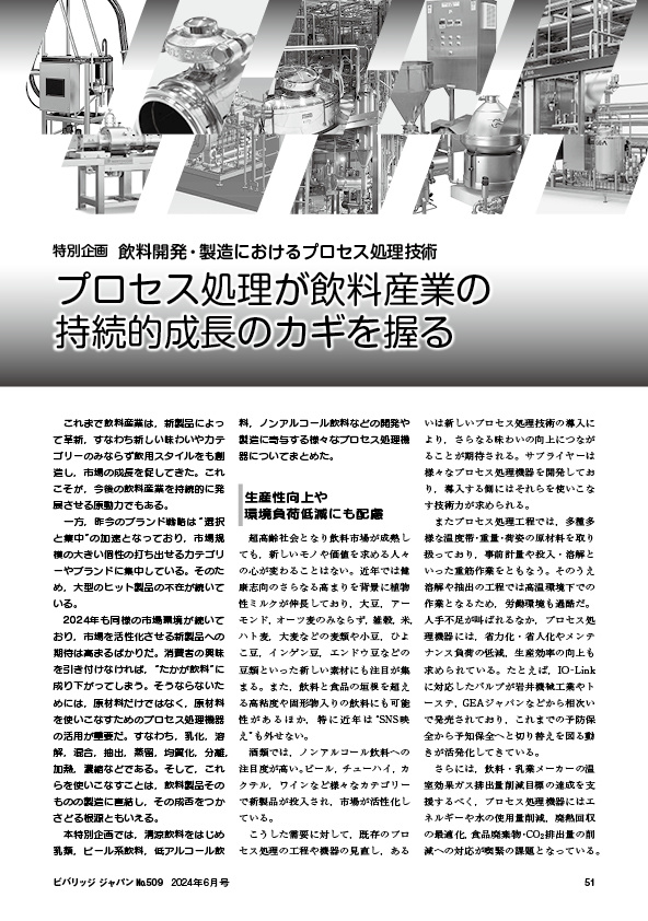 - 特別企画:飲料開発・製造におけるプロセス処理技術