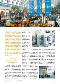 「国際プラスチック・ゴム展 K2010」が10月27日から11月3日の日程でドイツ・デュッセルドルフ見本市会場で開催された。今回は全世界から3,102社の出展と,22万人を超える登録入場者を集めた。同展は3年ごとに開催される世界最大のプラスチック系の専門展示会で,プラスチック原料から成形まで,飲料や食品包装分野のみならず,自動車やエレクトロニクス,生活資材まで幅広い分野を対象としている。飲料分野では,PETボトルやポリエチレン等によるダイレクトブローが,興味を引く主な分野といえるだろう。ビバリッジジャパンでは,2004年,2007年に引き続き現地取材し,PETボトルをめぐる最新情報を本号でリポートする。