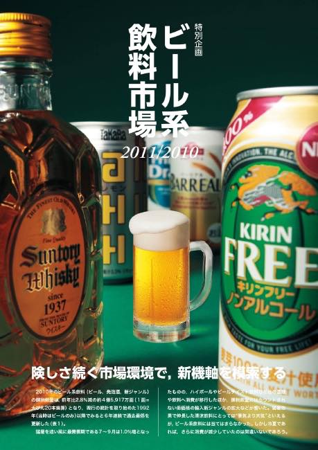 ただ,これまでビール系飲料の牽引役であった新ジャンルも伸びが鈍化してきており,今後は伸び悩むとの見方が多い。このように国内ビール系飲料市場の縮小が予想されるなかで,チューハイやハイボール,ウイスキー,梅酒といった非ビール分野のほか,海外市場などに新たな成長戦略を求める動きが加速している。本特別企画では,2010年のビール系飲料市場を振り返るとともに,2011年の各社のブランド戦略についてリポートする。